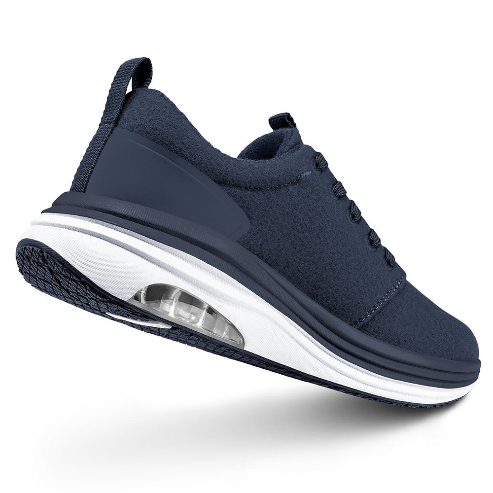 Der ultimative GIESSWEIN Aktivschuh mit Luftkissen vereint dynamische Laufeigenschaften und maximalen Merino Komfort wie kein anderer Freizeit-Sneaker. Der temperaturregulierende Merino 3D-Stoff ist an der Ferse mit stabilisierendem TPU verstärkt, die flachen Schnürsenkel perfektionieren den festen Sitz am Fuß und verteilen den Druck gleichmäßig am Fußrücken. Die EVA-Zwischensohle mit Mega-Air-Bubble garantiert exzellente Dämpfung durch die integrierte Luftblase im Fersenbereich. Die Air-Bubble-Sohlentechnologie perfektioniert Federung und Energie-Ausgleich bei jedem Schritt sowie bei langem Stehen. Die strukturierte Gummi-Profil-Sohle für optimalen Grip sorgt für geniale Traktion und einen sicheren Stand auf jedem Untergrund. Das weiche Merino Wechselfußbett verwöhnt die Füße mit trockener Haut ohne Schweiß- oder Hitzegefühl. Das hochwertige Casual Design des Sneakers rundet den Komfort mit Schlaufen an Ferse und Schuhzunge für müheloses An- und Ausziehen ideal ab. Erleben Sie entspannte Füße und leichte Beine ohne Ermüdungserscheinungen in 360° Merino Wolle mit Luftkissen. Weite H - perfekt geeignet für normale bis breite Füße.VERSAND & LIEFERUNG
