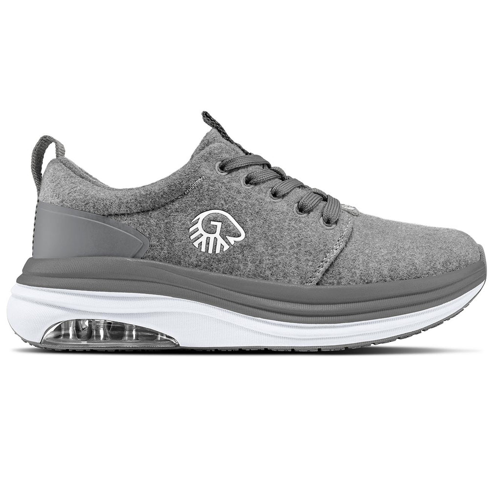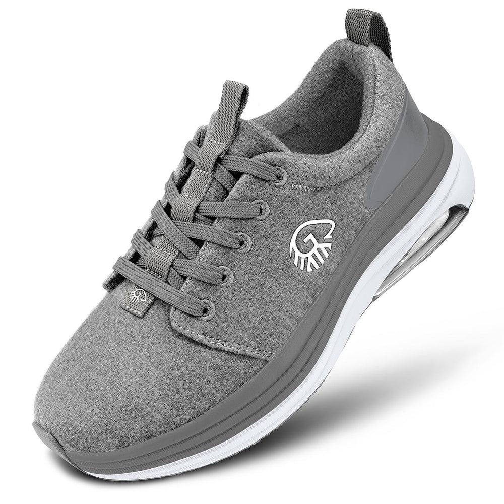 Der ultimative GIESSWEIN Aktivschuh mit Luftkissen vereint dynamische Laufeigenschaften und maximalen Merino Komfort wie kein anderer Freizeit-Sneaker. Der temperaturregulierende Merino 3D-Stoff ist an der Ferse mit stabilisierendem TPU verstärkt, die flachen Schnürsenkel perfektionieren den festen Sitz am Fuß und verteilen den Druck gleichmäßig am Fußrücken. Die EVA-Zwischensohle mit Mega-Air-Bubble garantiert exzellente Dämpfung durch die integrierte Luftblase im Fersenbereich. Die Air-Bubble-Sohlentechnologie perfektioniert Federung und Energie-Ausgleich bei jedem Schritt sowie bei langem Stehen. Die strukturierte Gummi-Profil-Sohle für optimalen Grip sorgt für geniale Traktion und einen sicheren Stand auf jedem Untergrund. Das weiche Merino Wechselfußbett verwöhnt die Füße mit trockener Haut ohne Schweiß- oder Hitzegefühl. Das hochwertige Casual Design des Sneakers rundet den Komfort mit Schlaufen an Ferse und Schuhzunge für müheloses An- und Ausziehen ideal ab. Erleben Sie entspannte Füße und leichte Beine ohne Ermüdungserscheinungen in 360° Merino Wolle mit Luftkissen. Weite H - perfekt geeignet für normale bis breite Füße.VERSAND & LIEFERUNG