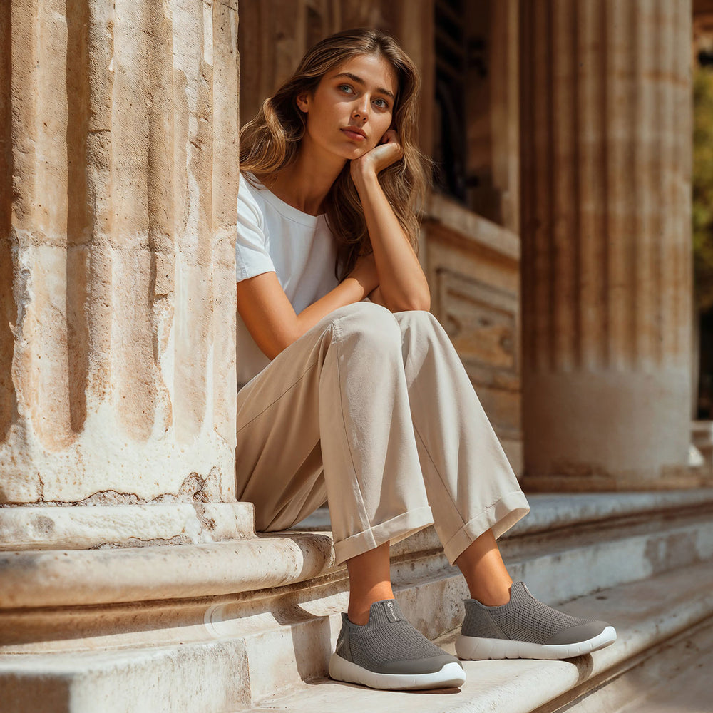 Steig mit einem Schritt in den Sneaker, zieh ihn im Vorbeigehen an und los! Handy, Schlüssel, Einkaufstaschen, Kinder – Hände und Arme bleiben frei für alles was dir wichtig ist! Spare Zeit und Energie mit der neuesten Sneaker-Innovation aus unserem Komfort-Labor! Das von GIESSWEIN patentierte, zweiteilige Fersenteil mit feiner Polsterung lässt dich mühelos in den Schuh gleiten. So geschmeidig und sanft, dass du auch barfuß mit einem Schritt im Schuh stehst. 360° superweiches Gestrick aus recyceltem Polyester sorgen für das optimale Fußklima. Genieße das trockene Hautgefühl ohne Druckstellen und Schweißgefühl. Ein feines Web-Band in der der Schuhzunge maximiert die inVERSAND & LIEFERUNG